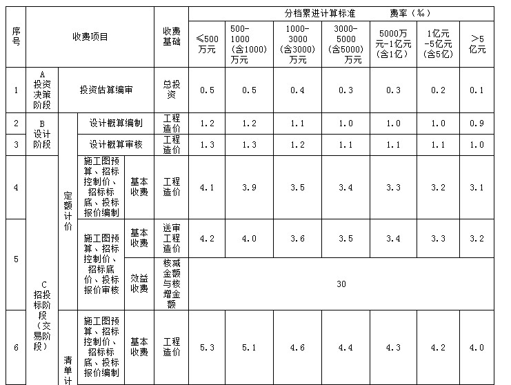 黑龙江志成新瑞项目管理有限公司工程造价咨询服务收费标准表