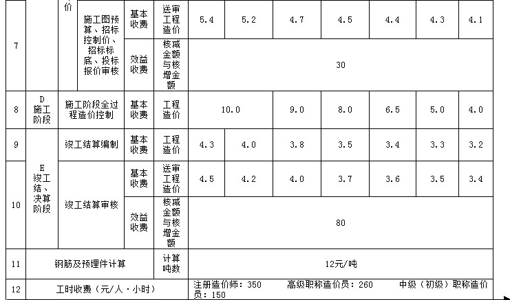 9、钢筋及预埋铁件的咨询收费,按上表标准另行计费。